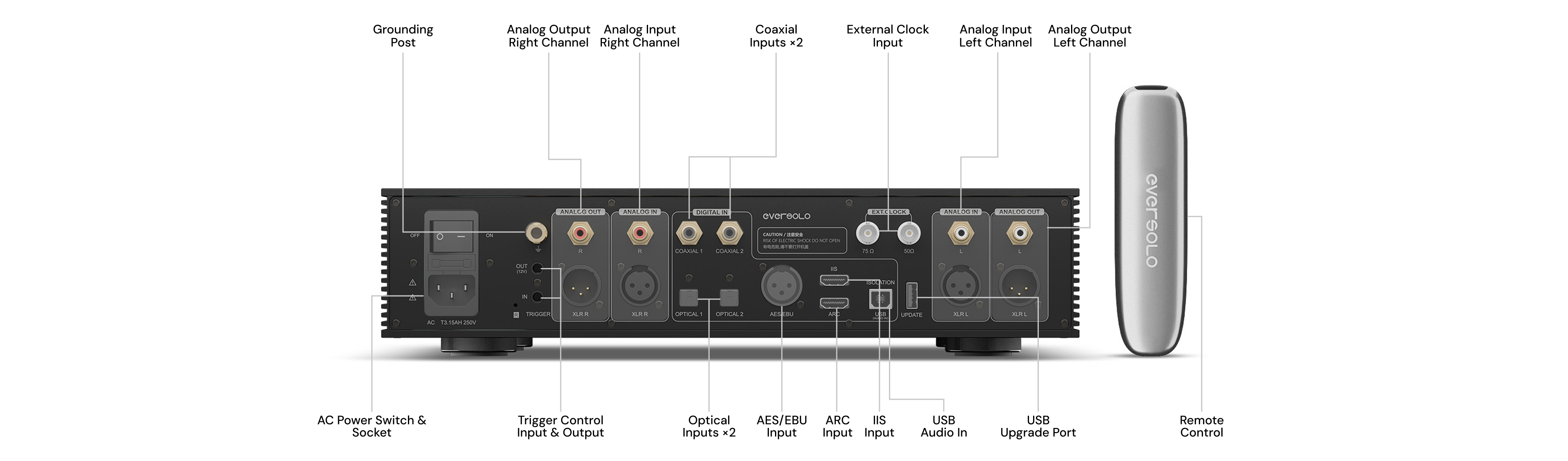 - Hodinový systém DAC-Z10, nazývaný Eversolo Precision Core, kombinuje teplotne riadený kremíkový oscilátor OCXO, technológiu PLL (fázovo uzamknutá slučka) a rekonštrukciu hodín FPGA.